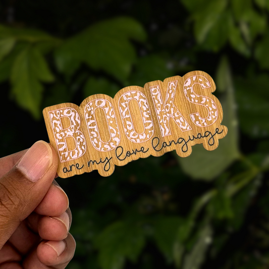 "BOOKS ARE MY LOVE LANGUAGE" Bamboo Wood Sticker