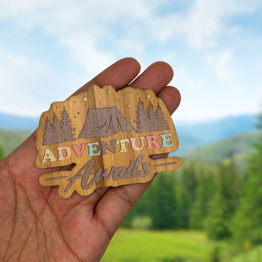 "ADVENTURE AWAITS" Bamboo Wood Sticker