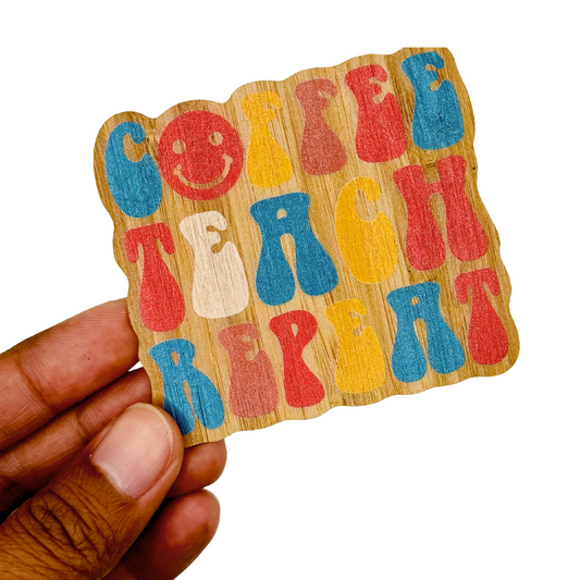 "COFFEE, TEACH, REPEAT" Bamboo Wood Sticker