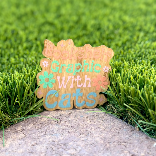 "BOOKSHELF GRAPHICS WITH CATS" Bamboo Wood Sticker