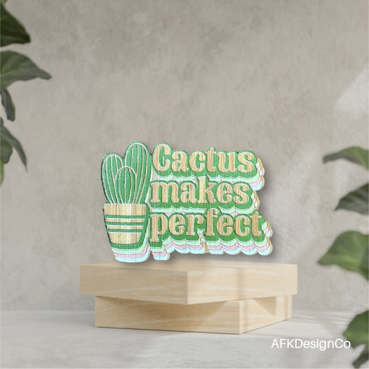 "Cactus Makes Perfect" | Bamboo Wood Stickers