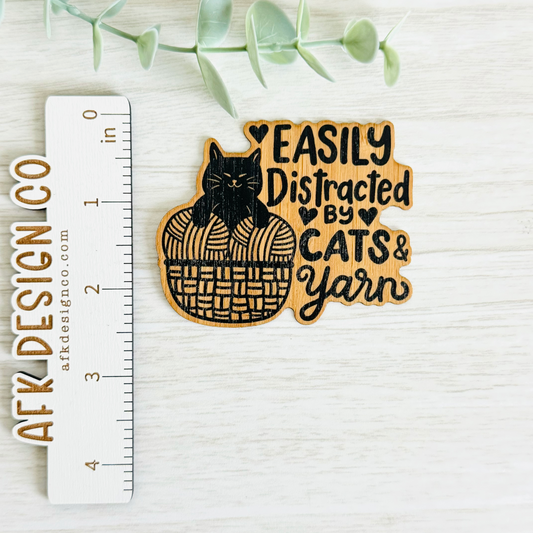 "EASILY DISTRACTED BY CATS AND YARN 1" Bamboo Wood Sticker
