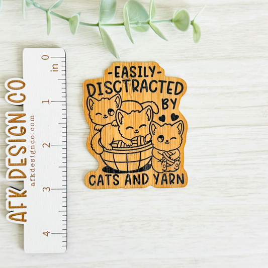 "EASILY DISTRACTED BY CATS AND YARN 2" Bamboo Wood Sticker