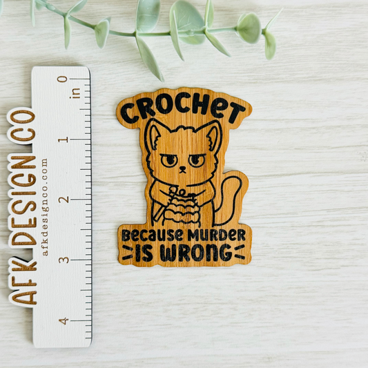 "CROCHET BECAUSE MURDER IS WRONG" Bamboo Wood Sticker