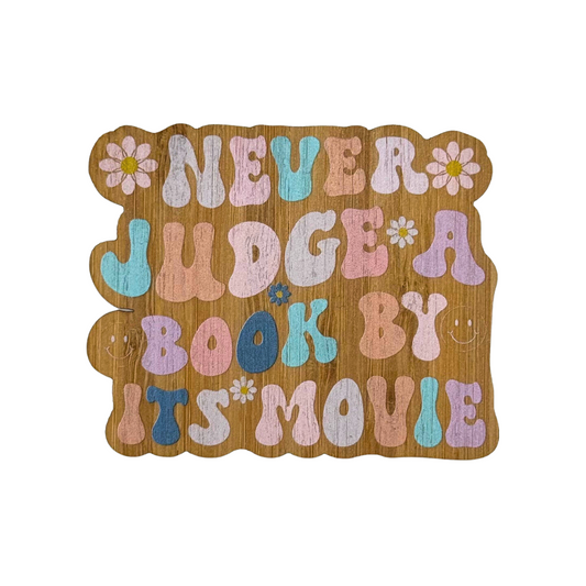 "NEVER JUDGE A BOOK BY ITS MOVIE" Bamboo Wood Sticker