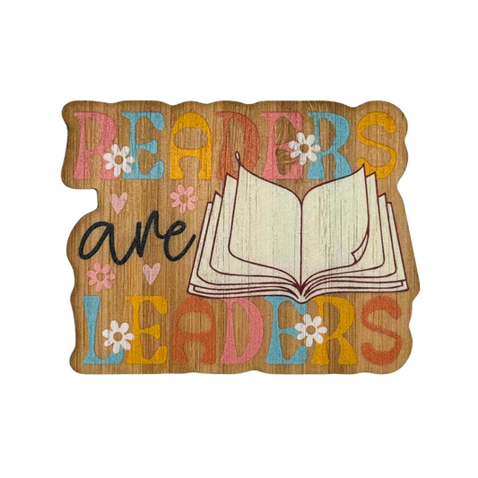 "READERS ARE LEADERS" Bamboo Wood Sticker