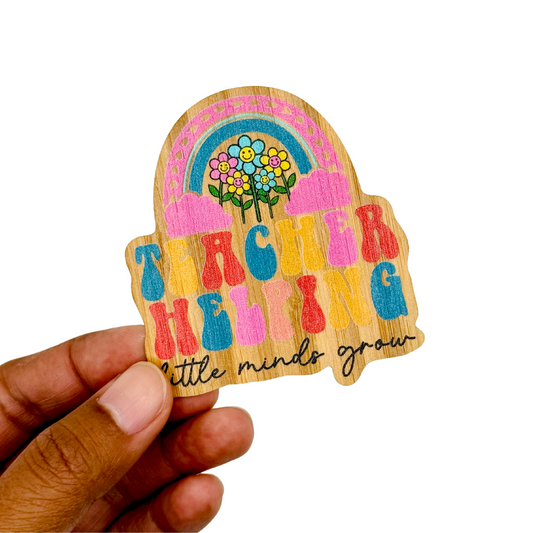 "TEACHER HELPING LITTLE MINDS GROW" Bamboo Wood Sticker