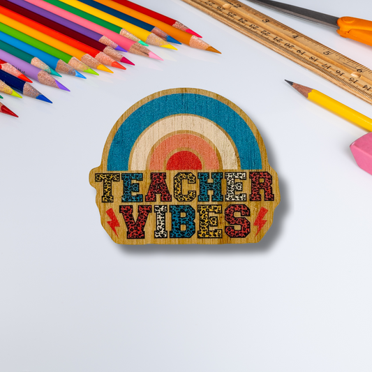 "TEACHER VIBES" Bamboo Wood Sticker