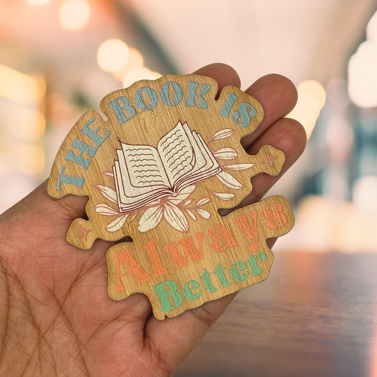 "THE BOOK IS ALWAYS BETTER" Bamboo Wood Sticker