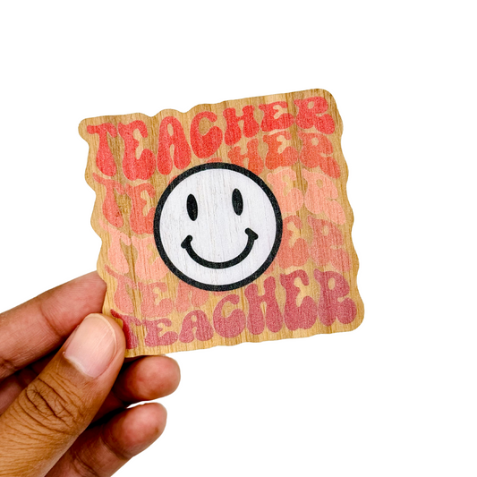 "TEACHER (smiley face)" Bamboo Wood Sticker