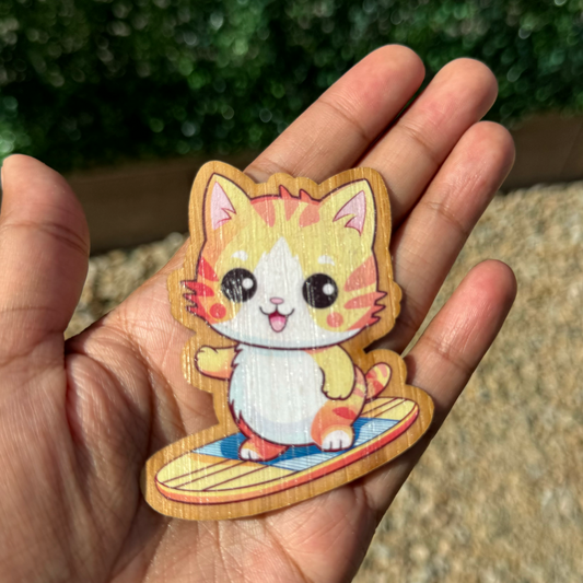 "SURFER CAT" Bamboo Wood Sticker